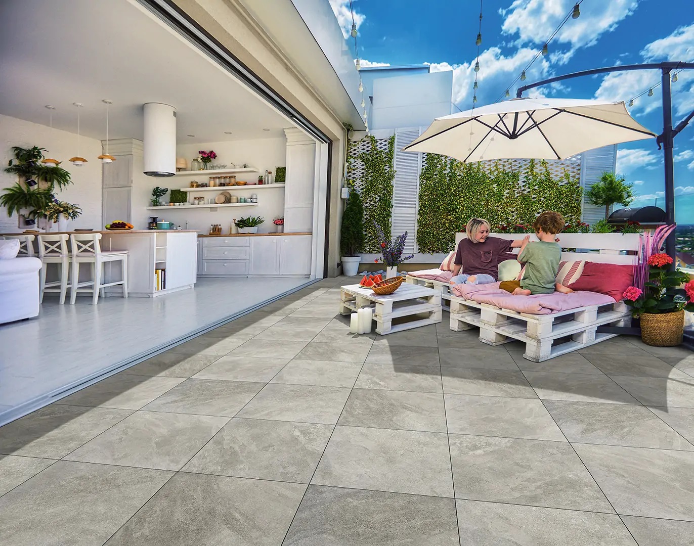 Door toepassing van de modernste technieken kunnen keramische tegels nu ook op betonnen dragers verlijmd worden. Hierdoor heeft u aan het oppervlak alle gemakken van de kwaliteit van keramiek, zoals slijt- en kleurvast, krasvast, vorstbestendig en onderhoudsarm, en door de onderlaag van beton het gemak van een eenvoudige verwerking en een stevig terras.