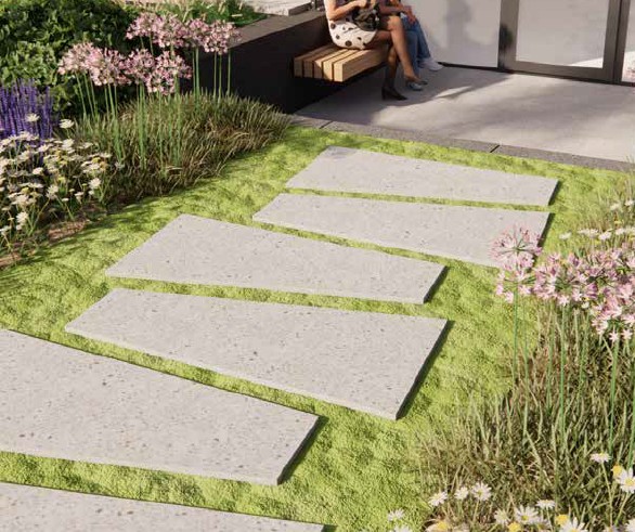 Ook nieuw is de Trapezium tegel, een tapse tegel waarmee hele speelse paden gemaakt kunnen worden.