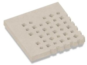 En als laatste nieuwigheid is er de serie Weave, hele grote tegels, van 100x100x10, met uitsparingen erin. In vier varianten: helemaal open, met rand, met binnenhoek en met buitenhoek. Waterpasserend, dus beter voor bodem en lucht. Verharding met respect voor mens en milieu! Leverbaar in diverse kleuren en natuurlijk goed te combineren met de dichte 100×100 tegels.